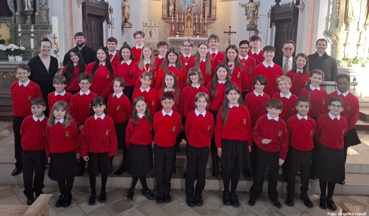 Bereits der Einzug zum Lied „Komm, Heil’ger Geist, der Leben schafft“ ließ die besondere Atmosphäre erahnen. Am Altar entfaltete sich anschließend ein musikalisches Spektrum, das von geistlichen Gesängen aus verschiedenen Jahrhunderten bis hin zu internationalen Liedern reichte. In mehreren Sprachen – darunter Latein, Englisch und natürlich auch Deutsch – überzeugten die jungen Stimmen durch Ausdruckskraft und harmonisches Zusammenspiel. Der wiederkehrende Zwischenapplaus unterstrich die Begeisterung des Publikums.