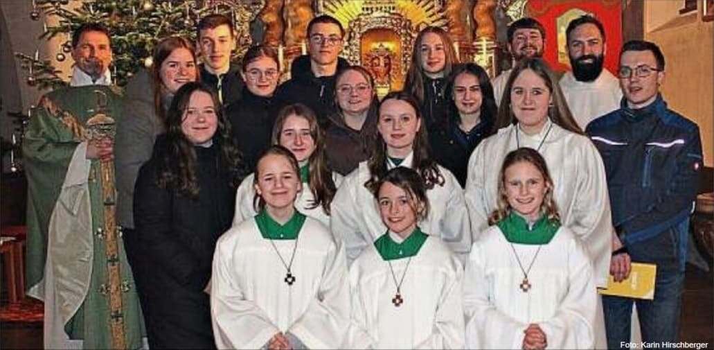 Auch wenn der offizielle Dienst am Altar vorbei sei, würden sie ein Teil der Gemeinschaft bleiben und seien aufgerufen, die frohe Botschaft in die neuen Lebensabschnitte weiterzutragen. Ein Ministrant zu sein, sei mehr als nur ein Hobby. Es sei eine Form der Nachfolge. Es gehe darum, sich rufen zu lassen, so der Pastoralreferent. Dann stellte er die drei neuen Ministrantinnen vor: Josefine Weber, Elisabeth Weber und Emma Strahl.