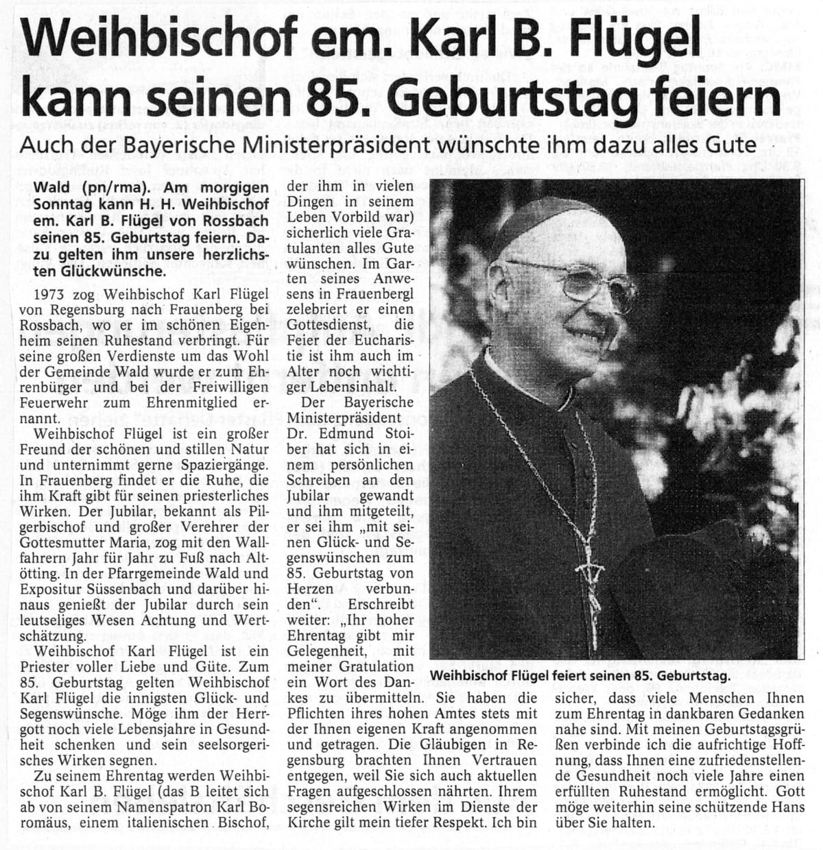 Weihbischof Flügel kann 85. Geburtstag feiern